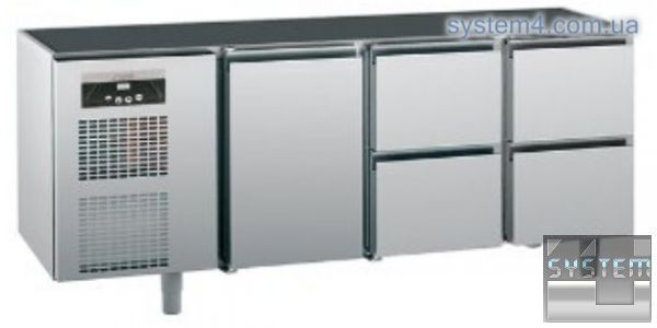 Несущий каркас выполнен из нержавеющей стали AISI 304 . Толщина изоляции 60 мм, она изготовлена из полиуретана без использования CFC. Глубина 70 см - GN 1/1. Рабочий стол высотой 60 мм выполнен из нержавеющей стали AISI 304 с звукопоглощающей разделительной панелью. Предлагаются варианты без рабочего