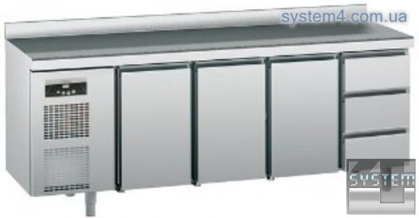Несущий каркас выполнен из нержавеющей стали AISI 304 . Толщина изоляции 60 мм, она изготовлена из полиуретана без использования CFC. Глубина 70 см - GN 1/1. Рабочий стол высотой 60 мм выполнен из нержавеющей стали AISI 304 с звукопоглощающей разделительной панелью. Предлагаются варианты без рабочего