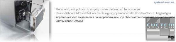 Холодильный ящик GN 1/1 над моторным отсеком позволяет лучше использовать полезный объем. Внутренняя камера имеет штампованное днище и отверстие для промывки и облегчения чистки. Зубчатые рейки из нержавеющей стали AISI 304 легко снимаются. Ножки из нержавеющей стали AISI 304 регулируются по высоте. Панель органов управления, оборудованная электронной платой, выполняющей следующие функции: