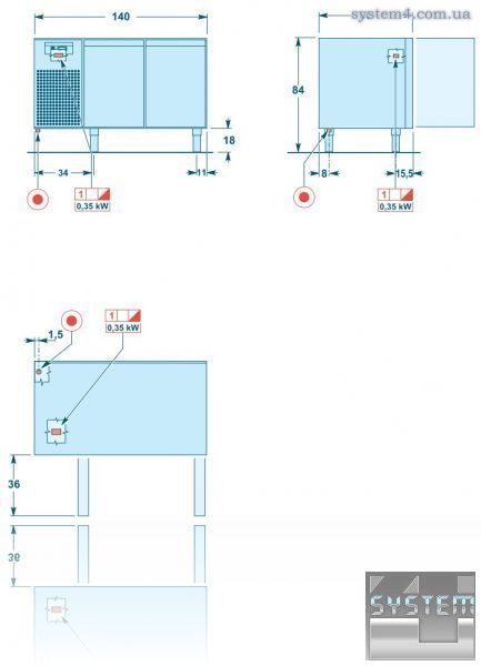 Предлагаются варианты без рабочего стола, с односторонним рабочим столом, или с односторонним рабочим столом и плинтусом столешницы. Внутренняя камера имеет штампованное днище для облегчения чистки. Зубчатые рейки из нержавеющей стали AISI 304 легко снимаются. Ножки из нержавеющей стали AISI 304 регулируются по высоте. Панель управления оборудована цифровым термометром-термостатом. Рабочая температура: от +0 до +10°C. Автоматическая оттайка и система испарения конденсата. В комплектацию входят 1 пара направляющих из нержавеющей стали AISI 304 и 1 решетка на отсек. Комплект замков - по дополнительному заказу.