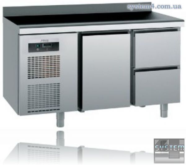 Предлагаются варианты без рабочего стола, с односторонним рабочим столом, или с односторонним рабочим столом и плинтусом столешницы. Внутренняя камера имеет штампованное днище для облегчения чистки.  Зубчатые рейки из нержавеющей стали AISI 304 легко снимаются. Ножки из нержавеющей стали AISI 304 регулируются по высоте. Панель  управления оборудована цифровым термометром-термостатом. Рабочая температура: от +0 до +10°C.  Автоматическая оттайка и система испарения конденсата. В комплектацию входят 1 пара направляющих из нержавеющей стали AISI 304 и 1 решетка на отсек. Комплект замков - по дополнительному заказу.