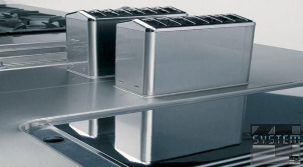 Комбинированная (1/2 гладкая и 1/2 рифленая) жарочная поверхность Angelo Po 08WFT3GV на нейтральном шкафу относится к тепловой модульной линии OMEGA 1100.