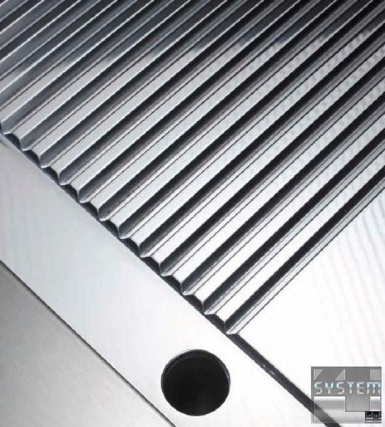 Поверхность для приготовления пищи из специальной тонкой стали Fe510D с сатинированным покрытием, 15 мм толщиной, слегка утоплена в столешницу. Крайне низкий показатель неровностей и шероховатостей.
