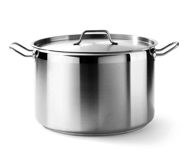 Каструля з кришкою, виготовлена з високоякісної хромованої сталі.