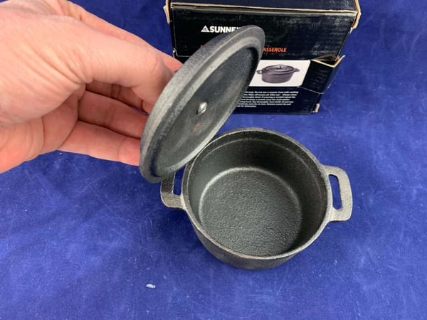 Горщик виготовлений з чорного чавуну, який отриманий в процесі випалу. ідеально підходить для подачі гарячих блюд. Підтримує високу температуру поданих страв протягом тривалого часу.