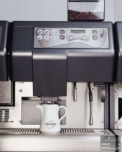Кавомашина-суперавтомат професійна програмована одногрупна з мікропроцесорним керуванням з високою продуктивністю здійснює авторівень води, подачу пари, подачу окропу, програмування кількості води на порцію. Об'єм бойлера - 3,5 л. Колір корпусу – сірий. Апарат має електронну індикацію, лічильник порцій, вбудовану кавомолку. Всі параметри можна налаштувати за бажанням під індивідуальні потреби споживача: дозу меленої кави на чашку і кількість води на порцію, обсяги напоїв, час і якість помелу, тиск бойлера в залежності від обраної кави та багато іншого. На рідкокристалічному дисплеї відображається необхідна для оператора інформація: закінчилася кава, потрібне очищення від накипу, заповнився контейнер для використаної кави та інше, знімаються показники лічильника приготовлених порцій на кожен вид напою. Бункер для кави може вміщувати 1 кг зерен. Діаметр роздавальної групи може бути 36 мм або 43 мм. У цій машині механізм зі здвоєним поршнем пресує порцію кави і готує напій, тоді як відходи виштовхуються в камеру стиснення і потім внутрішнім ножем у збірку. Устаткування може виробляти близько 180 чашок еспресо на годину або 120 чашок каппуччино на годину. Кавомашина підключається стаціонарно до центрального водопостачання, забезпечує авторівень води. Можна вибрати спеціальну металеву основу для установки машини, а також контейнер для води, якщо немає можливості підключення до водопроводу, та піддон для безпосереднього збирання відходів. Модель призначена для приготування каппуччино натисканням однієї кнопки. Невелика холодильна камера всередині машини дозволяє зберігати до 4-х літрів молока протягом чотирьох днів. Температура регулюється термостатом. Регульована система приготування каппуччино підігріває та збиває молоко чи вершки, а цикл очищення автоматично промиває всю систему після кожної порції каппуччино. У процесі приготування каппуччино та інших напоїв на його основі можна регулювати густоту молочної піни та відсоткове співвідношення кави та молока.