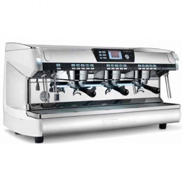 Апарат має електронну індикацію, 3 крани подачі пари, 1 кран подачі гарячої води з економайзером, електронний контроль температури, дисплей, підігрівник чашок із захисним бортиком, електронний контроль параметрів помелу, програмовані кнопки вкл./викл, систему самодіагностики зі збереженням попередніх даних, Роз'єм USB для підключення до комп'ютера, лічильник порцій, автоматичний цикл миття. Об'єм мідного бойлера – 17л. Система автопар програмує температуру молока. Робоча група регулюється за висотою, що дозволяє використовувати чашки висотою 90мм та склянки висотою 135мм. Спеціальна система з подвійним заварюванням забезпечує відмінну каву протягом усього дня та сухі кавові відходи після кожної операції. Ергономічність машини відзначена європейським сертифікатом: ручка фільтротримача має конічну форму та відхилена на 10* для зручності оператора, не ковзає навіть у мокрій руці; м'яка система з'єднань дозволяє встановлювати або знімати фільтроутримувач без зусиль; яскравість підсвічування кнопок регулюється; широкий візуальний дисплей; робочий піддон із нержавіючої сталі з ґратами не забруднює чашки; крани подачі пари з нержавіючої сталі повертаються на 360*, що дозволяє використовувати ємності різного розміру та мають гумовий захист від опіку. Відстань між робочими групами – 230 мм. Програмований рядок, що світиться, на дисплеї може вітати відвідувачів, знайомити їх з меню, повідомляти про спеціальні акції, знижки і т.д. Матеріал корпусу – нержавіюча сталь та пластик ABS.