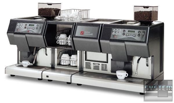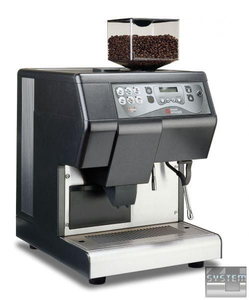 Кавомашина-суперавтомат професійна програмована одногрупна з мікропроцесорним керуванням з високою продуктивністю здійснює авторівень води, подачу пари, подачу окропу, програмування кількості води на порцію. Об'єм бойлера - 3,5 л. Колір корпусу – сірий. Апарат має електронну індикацію, лічильник порцій, вбудовану кавомолку. Всі параметри можна налаштувати за бажанням під індивідуальні потреби споживача: дозу меленої кави на чашку і кількість води на порцію, обсяги напоїв, час і якість помелу, тиск бойлера в залежності від обраної кави та багато іншого. На рідкокристалічному дисплеї відображається необхідна для оператора інформація: закінчилася кава, потрібне очищення від накипу, заповнився контейнер для використаної кави та інше, знімаються показники лічильника приготовлених порцій на кожен вид напою. Бункер для кави може вміщувати 1 кг зерен. Діаметр роздавальної групи може бути 36 мм або 43 мм. У цій машині механізм зі здвоєним поршнем пресує порцію кави і готує напій, тоді як відходи виштовхуються в камеру стиснення і потім внутрішнім ножем у збірку. Устаткування може виробляти близько 180 чашок еспресо на годину. Кавомашина підключається стаціонарно до центрального водопостачання, забезпечує авторівень води. Можна вибрати спеціальну металеву основу для установки машини, а також контейнер для води, якщо немає можливості підключення до водопроводу, та піддон для безпосереднього збирання відходів. Модель без холодильника для молока оснащена вбудованим каппуччинатором.