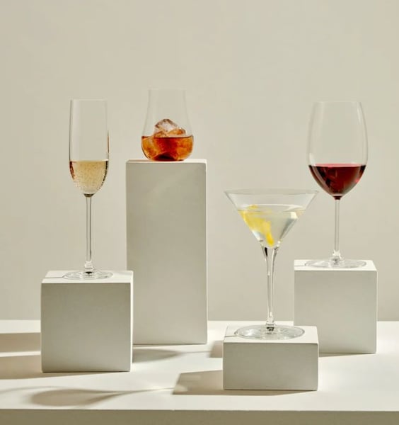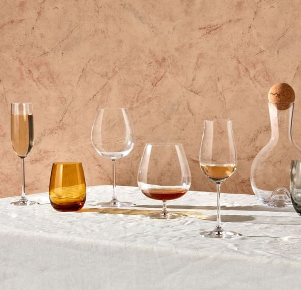 Колекція келихів Nude Vintage вирізняється вигнутими силуетами, рельєфними текстурами та балансує між ретроестетикою та сучасною елегантністю.