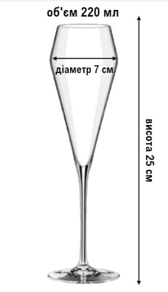 Характеристика: об'єм 220 мл, висота 25 см, діаметр 7 см