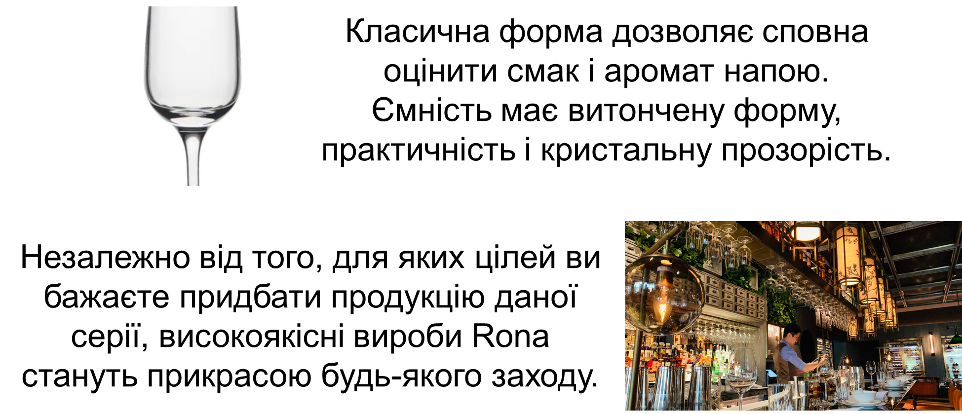 Барне скло колекції Rona Invitation призначене для сервірування столу та відноситься до сегменту професійного посуду для ресторанів.
