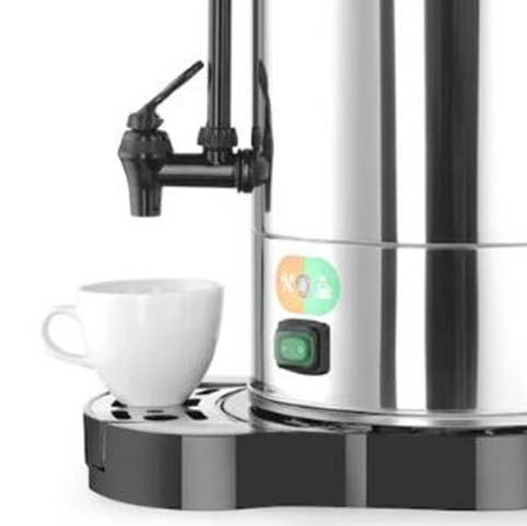 Кип'ятильник Hendi 211106 - кип'ятильник, призначений для приготування кип'яченої води з температурою близько 100°C, яка в подальшому буде використовуватися підприємствами громадського харчування для приготування глінтвейну, чаю, кавових напоїв та підігріву води. Завдяки своєму унікальному дизайну та акценті на деталях - ця кавоварка привертатиме увагу на будь-якому заході.