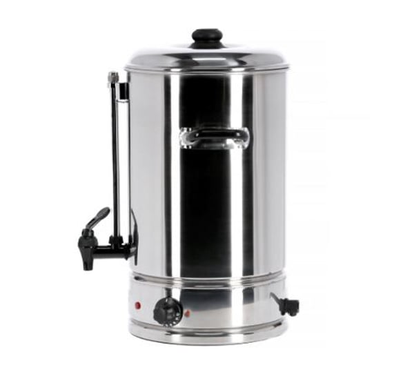 Кип'ятильник/чаєраздатчик GGM WKH10 використовується на підприємствах громадського харчування та торгівлі, в офісах та готелях для нагрівання води та підтримання в гарячому стані, наприклад, глінтвейну, води, кави або чаю тощо. Кип'ятильник електричний - апарат періодичної дії, який потребує повторного заповнення ємності водою. Завдяки своєму унікальному дизайну та акценті на деталях - цей чаєраздатчик привертатиме увагу на будь-якому заході. Матеріал одностінного корпусу, кришки та основи апарату - нержавіюча сталь.