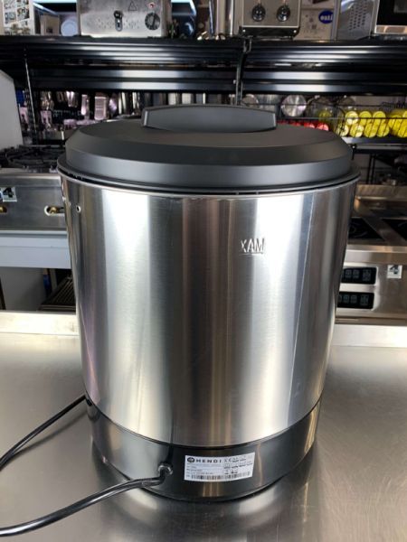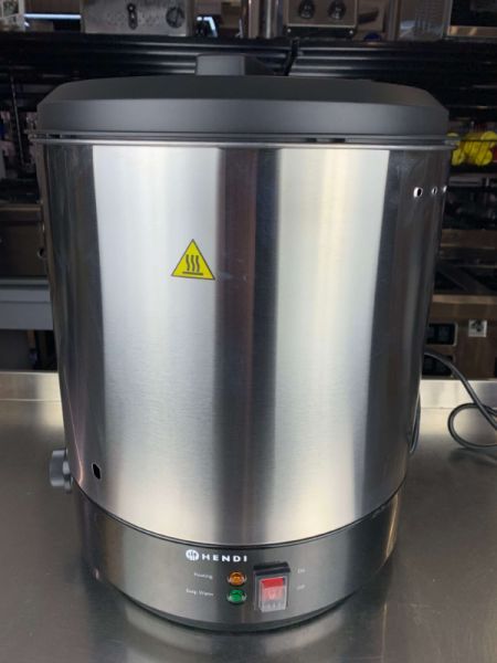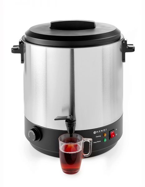 Електрокип'ятильник Hendi - незамінне обладнання для приготування глінтвейну та підігріву гарячої води. Часто застосовується у кафе, барах та на тематичних ярмарках, де готують гарячі напої. Об'єм резервуара досить місткий – 28 літрів, має компактні розміри, тому займе на столі мінімум робочого простору.