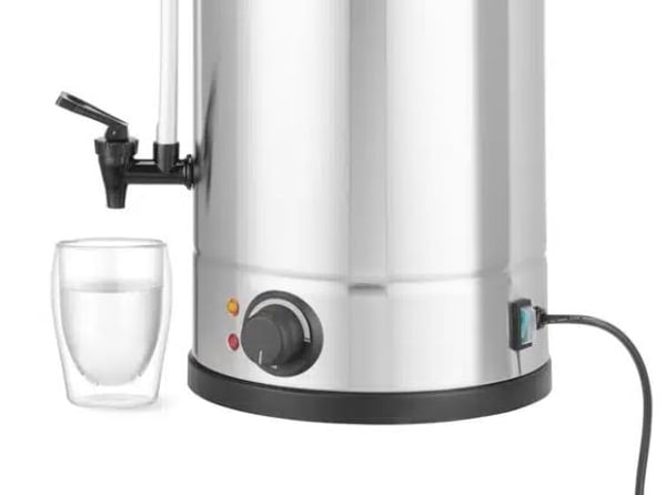 Електрокип'ятильник Hendi 211144 - кип'ятильник, призначений для приготування кип'яченої води з температурою близько 100 °C , яка надалі використовуватиметься підприємствами громадського харчування для глінтвейну, чаю, кавових напоїв та підігріву води. Завдяки своєму унікальному дизайну та акценті на деталях - ця кавоварка привертатиме увагу на будь-якому заході. Кип'ятильник електричний - апарат періодичної дії, який потребує повторного заповнення ємності водою. Нагрів води у внутрішньому обсязі електрокип'ятильника здійснюється завдяки вбудованому в дно ТЕНу. Це розміщення Тена - захищає його від накипу.