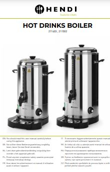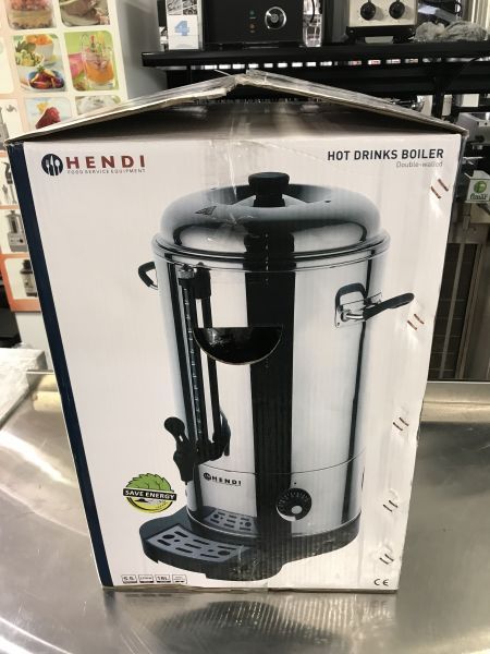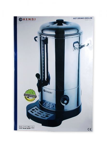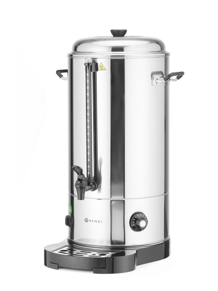 Кип'ятильник Hendi 211502 - кип'ятильник, призначений для приготування кип'яченої води з температурою близько 100°C, яка в подальшому буде використовуватися великими промисловими підприємствами, закладами громадського харчування для приготування глінтвейну, чаю, кавових напоїв та підігріву води. Вони зручні та прості у застосуванні. Отриманий окріп можна використовувати для приготування кави, чаю, продуктів швидкого приготування з концентратів на основі окропу. Завдяки своєму унікальному дизайну та акценті на деталях - кип'ятильник Hendi 211502 привертатиме увагу на будь-якому заході.