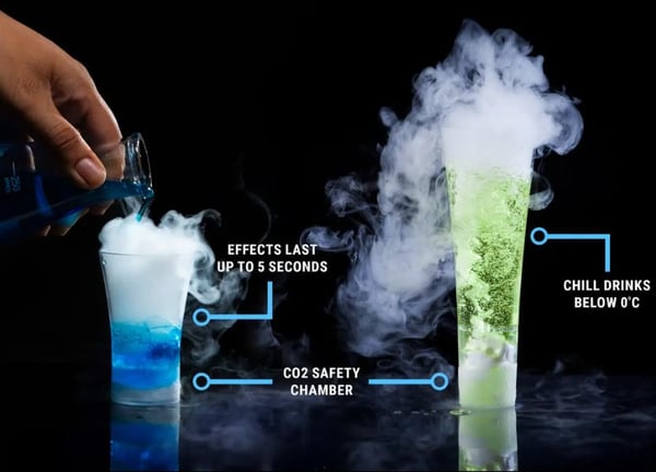 Він гарантує безпечне та приємне пиття, пропонуючи при цьому чарівний ефект сухого льоду.