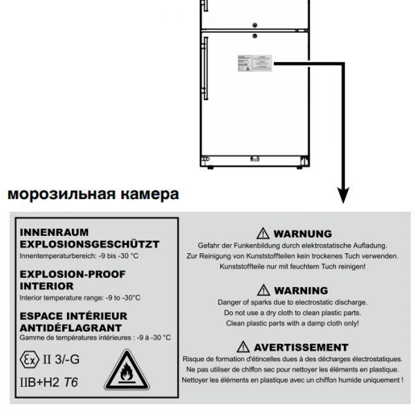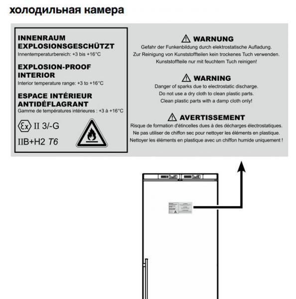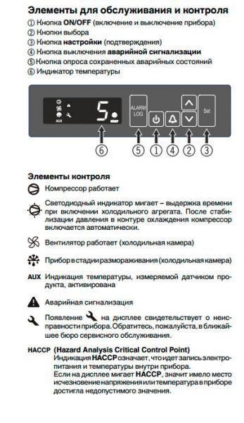 Звуковий та оптичний сигнали сповіщають про відхилення температури зберігання від заданих параметрів. Він також спрацьовує, якщо двері відкриті довше однієї хвилини і при збоях електропостачання.