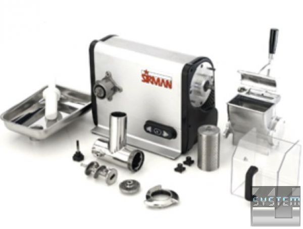 Професійна м'ясорубка і тертка Sirman - це традиційний комбайн, призначений для ресторанів, піцерій, кафе та багатьох інших закладів комунального харчування, він зручний і компактний, займає мінімум місця на робочій поверхні. М'ясорубка Sirman дозволяє рівномірно подрібнити м'ясо, створюючи бажану консистенцію та отримати фарш високої якості.