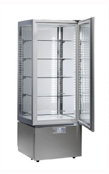 - легка конструкція з непомітною вбудованою ручкою візуально збільшує простір для експозиції кондитерських виробів та оптимізує видимість від нижньої до верхньої полиці;