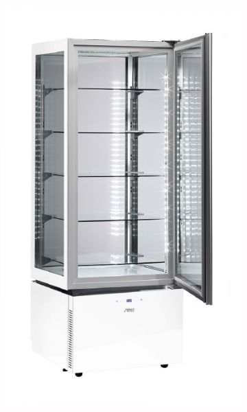 - легка конструкція з непомітною вбудованою ручкою візуально збільшує простір для експозиції кондитерських виробів та оптимізує видимість від нижньої до верхньої полиці;