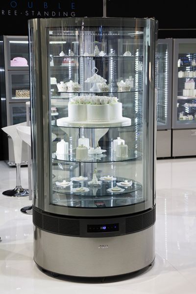 Кондитерська вітрина Sagi - це елегантна, оригінальна та інноваційна модель, пристосована для ресторанів, кафе, кондитерських, барів та інших закладів. Професійна кондитерська вітрина Sagi повністю циліндричної форми, створена для експонування та короткочасного зберігання тістечок, тортів та цукерок. Середньотемпературна кондитерська вітрина має динамічну систему охолодження та автоматичне розморожування, відносна вологість становить 70%.