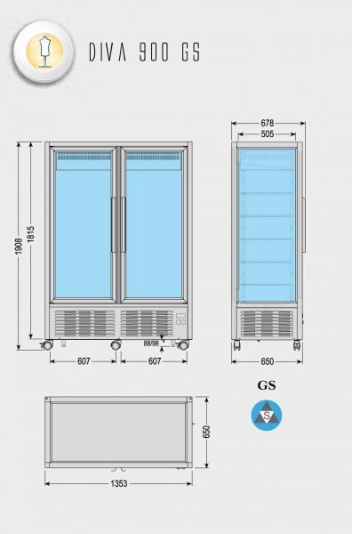 Технічні характеристики кондитерської шафи Tecfrigo DIVA 900 GS: