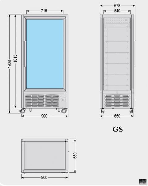Шафи виконані з профільного алюмінію. Тип холодильний. Скляні стінки та двері зі склопакетів забезпечують хорошу теплоізоляцію та всебічний огляд внутрішнього об'єму. Застосовано підсвічування та примусове охолодження.