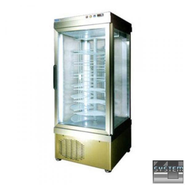 Кількість полиць у секції: 26 шт. Полиці сегментні, що обертаються. Електронна панель керування. Оздоблення під алюміній чи бронзу. Підсвічування. Примусове охолодження.