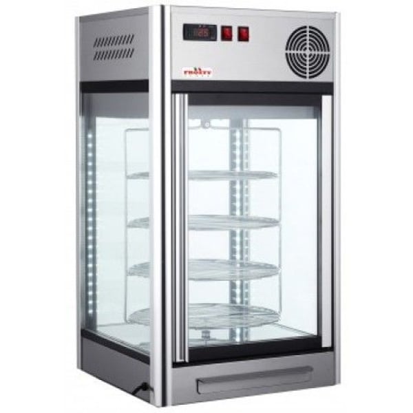 Вітрина призначена для зберігання та демонстрації різних кондитерських та харчових виробів, десертів, випічки та напоїв. Пристроєм вітрини передбачені чотири хромовані полиці, що обертаються, LED - підсвічування і цифровий регулятор температури.