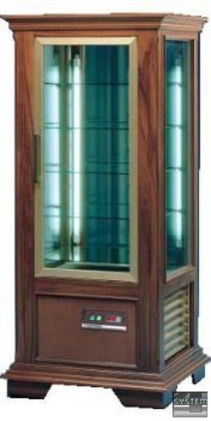 Шкафы выполнены из натурального дерева. Стеклянные стенки и двери из стеклопакетов обеспечивают хорошую теплоизоляцию и всесторонний обзор внутреннего объема. Применены подсветка и принудительное охлаждение.