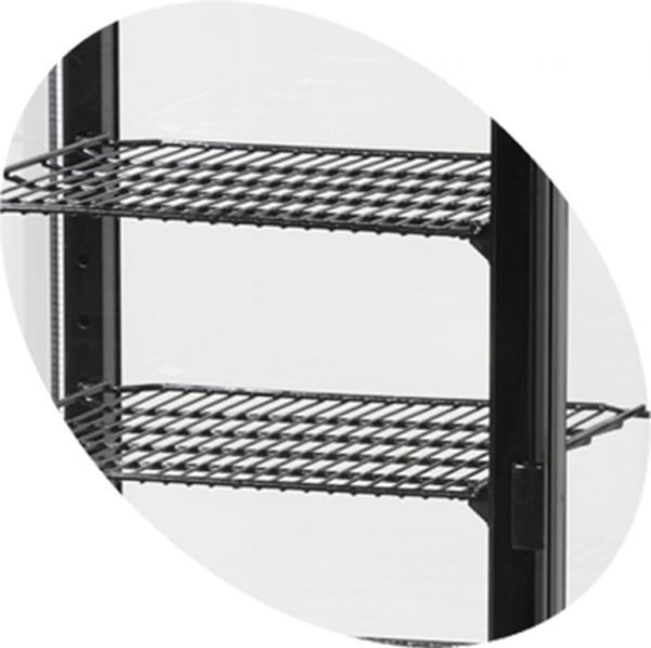 Засклена конструкція камери вигідно надасть викладку товару і цим наочно дозволить визначити місце розташування потрібного продукту, не відкриваючи дверцята - це дозволяє зберегти внутрішній температурний режим холодильної вітрини для десертів Tefcold.