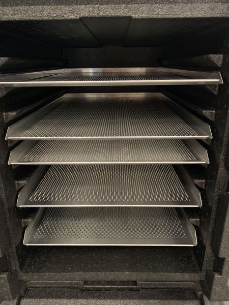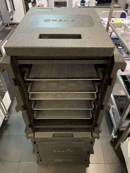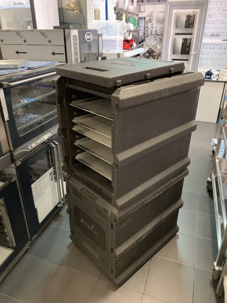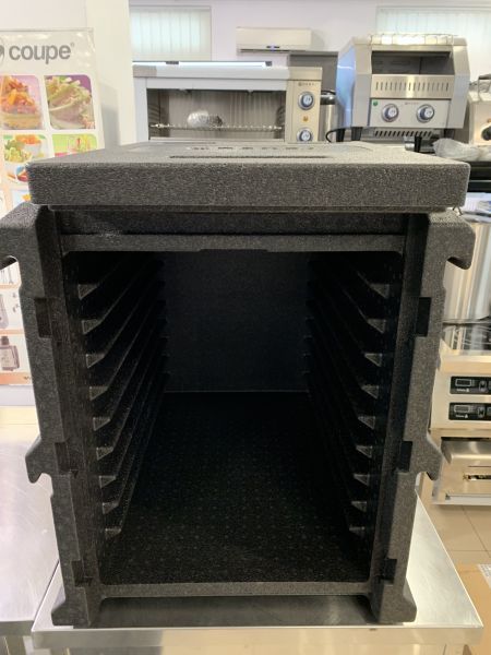 Кейтеринговий термоконтейнер Hendi 707685 призначений для мобільного транспортування страв, а також тривалої підтримки температури вмісту продукту та зберігання. У контейнер міститься 9 термостійких підносів розміром 600х400 мм.