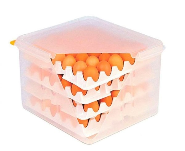 Ємність для яєць дозволяє зберігати яйця із закритою кришкою, забезпечуючи збереження і хороший огляд вмісту контейнера. Заміна оригінальної упаковки спеціальним лотком допомагає зберігати продукти уникаючи їх забруднення шкідливими бактеріями.