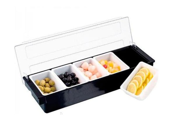 Харчовий контейнер на 5 лотків призначений для зберігання інгредієнтів, використовується в ресторанах, піцеріях, кафе та інших закладах громадського харчування.