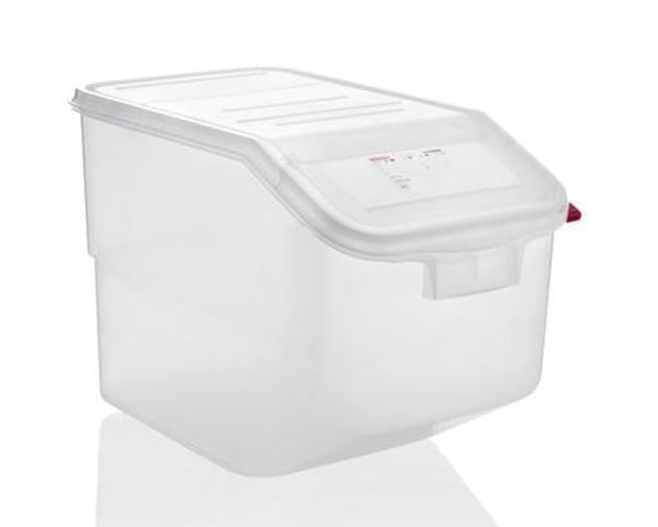 Харчовий контейнер з кришкою виконаний з поліпропілену, дозволений для використання в магазинах, супермаркетах, кулінарних закладах, піцеріях, гриль- та суші-барах, готельно-ресторанних комплексах. Достатньо ретельно вибрати місце, де буде розміщений контейнер. Рекомендується його встановити в сухому і добре провітрюваному місці, далеко від джерела тепла та вологості.