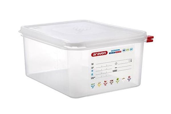Герметичний контейнер GN 1/2 Araven виготовлений із харчового поліпропілену, він не деформується від різких термічних перепадів, легко миється та легкий в експлуатації. Може використовуватись у великому діапазоні температур від -45 до +95 °C.