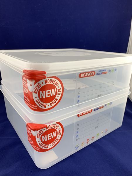 Контейнер з кришкою Araven з інноваційною системою закриття використовується в магазинах, супермаркетах, кондитерських, піцеріях, гриль- та суші-барах, готельно-ресторанних комплексах та інших закладах громадського харчування.