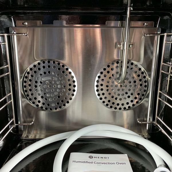 За допомогою регулятора 5-рівневого парозволоження можна автоматично контролювати часові інтервали впорскування пари у внутрішній об'єм камери пекарської шафи. Зволоження сприяє збереженню поживних цінностей продукту.