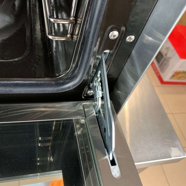 Двері з ущільнюючою прокладкою оснащені подвійним склом, яке забезпечує хорошу теплоізоляцію і уберігає персонал від опіків, а також скляні двері та внутрішнє освітлення дозволяють наочно визначити ступінь готовності виробу, що випікається без відкривання дверцят, тим самим зберігаючи внутрішній температурний режим.
