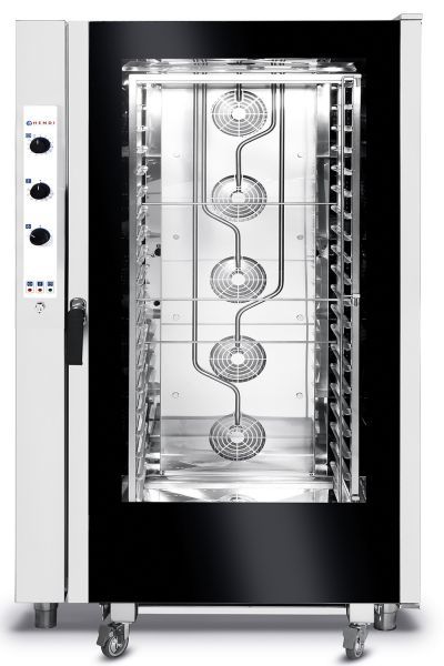 Професійний конвектомат оснащений візком на колесах. Візок укомплектований знімними напрямними для гастроємностей, розміром GN 1/1. Коліщатка сприяють її зручній мобільності.