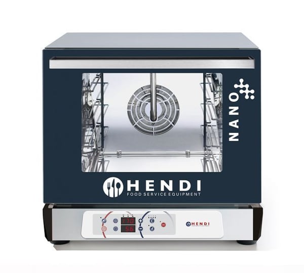 Професійний конвектомат Hendi - це ідеальне обладнання для випікання кондитерських та хлібобулочних виробів. Завдяки невеликим розмірам та низькому енергоспоживанням печі, конвектомат можна встановити практично в будь-якому місці в пекарні, кондитерській або магазині.