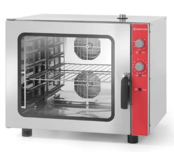 В основу роботи мануального конвектомату Revolution закладено процес конвекції . Тобто, нагрівання шафи для випічки Revolution 224878 здійснюється ТЕНами , які нагрівають повітря робочої камери. Далі, гаряче повітря, генерується шляхом "прямого упорскування " води на ТЕН. Процес проводиться 2 реверсивними вентиляторами - 2800 об/хв , які рівномірно розподіляє гарячу повітряну масу по всьому об'єму печі - забезпечуючи високий теплообмін між випіканням та довкіллям в електричному конвектоматі Революшин.