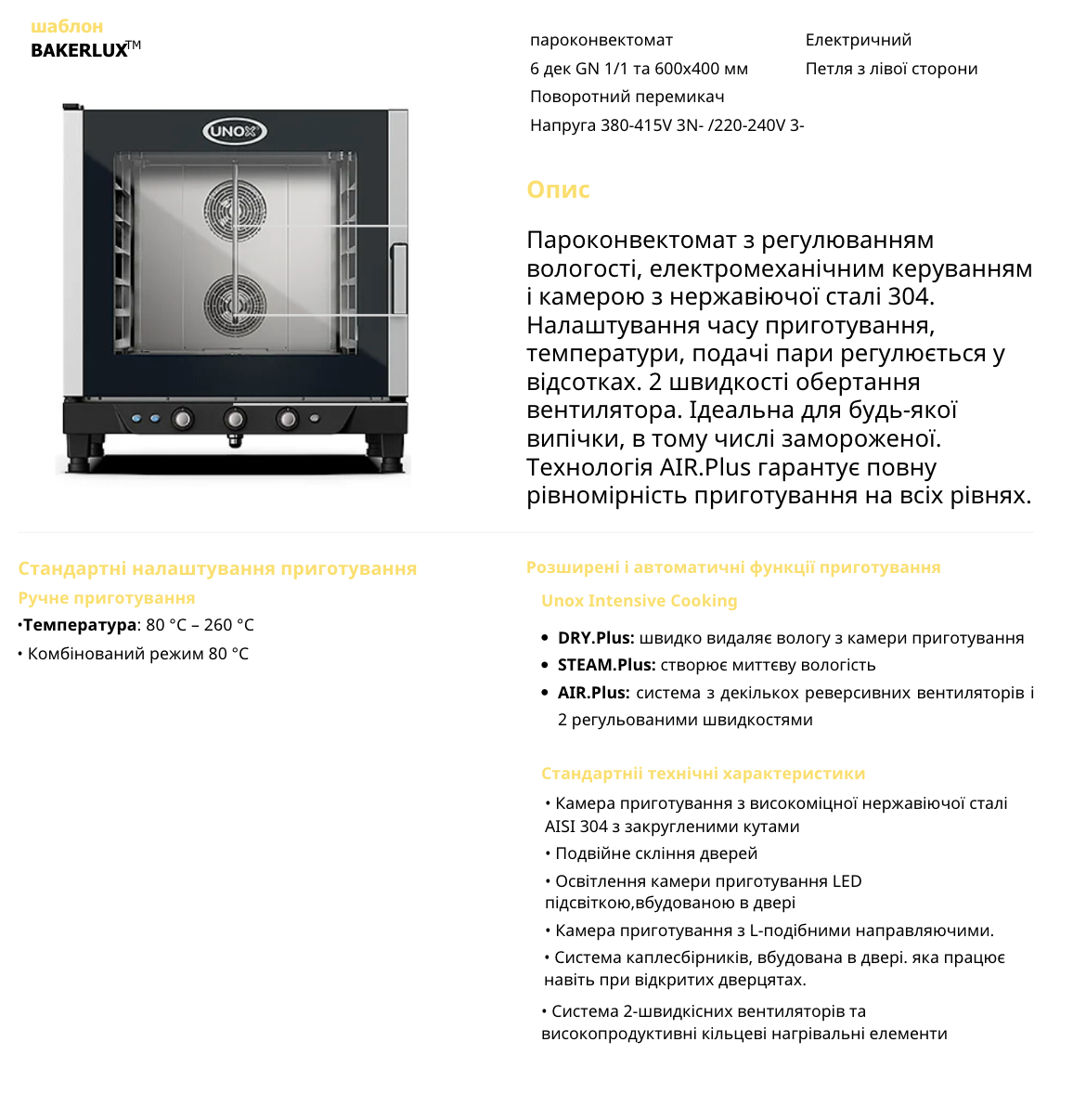 Технічна інформація Unox XB693