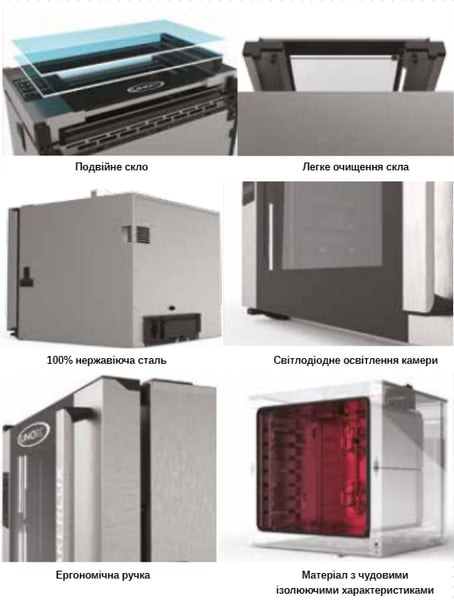 По внутрішньому контуру дверцят, пароконвекційна піч UNOX XEFR-10EU-EGRN оснащена LED підсвіткою, що забезпечує візуальний контроль за процесом приготування.