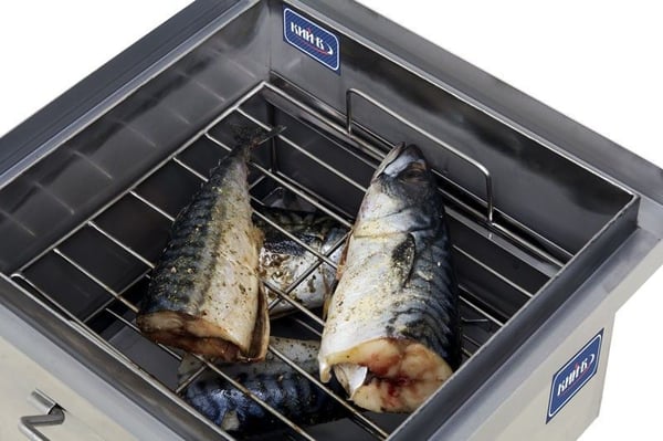 - використання всього об'єму коптильні дозволяє двоярусна конструкція грат з нержавіючої сталі;