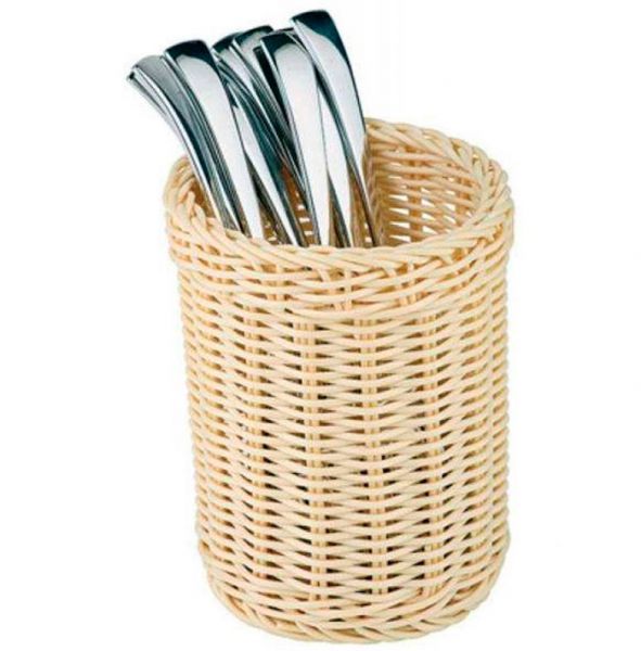 Кошик бежевого кольору для столових приладів виготовлений з поліпропілену.