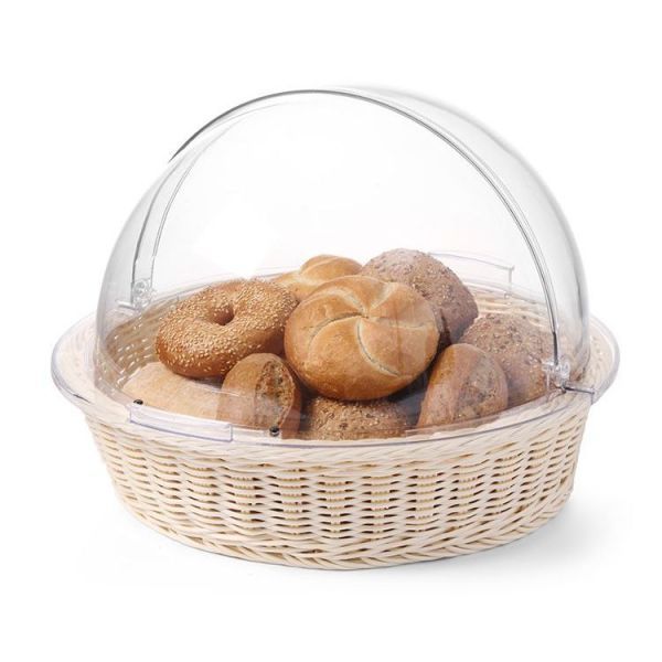 Кошик для хліба та булочок з кришкою кругла виготовлений із укріпленого поліротангу. Внутрішній зміцнюючий обідок виконаний із нержавіючої сталі.