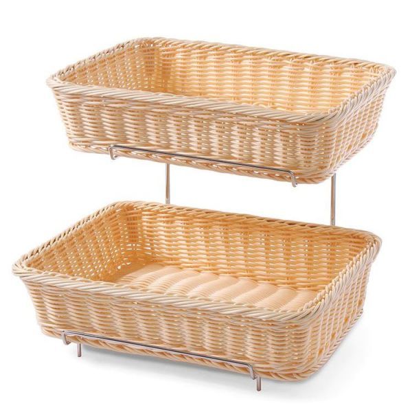 Кошик призначений для викладення хлібобулочних виробів. Плетена, має прямокутну форму. У комплекті два кошики та стелаж під них. Стелаж виконаний із нержавіючої сталі.