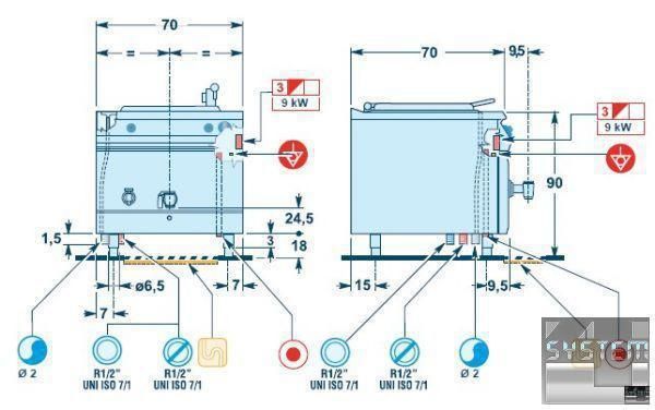 Технические характеристики котла пищеварочного Angelo Po 1G1PI1E: